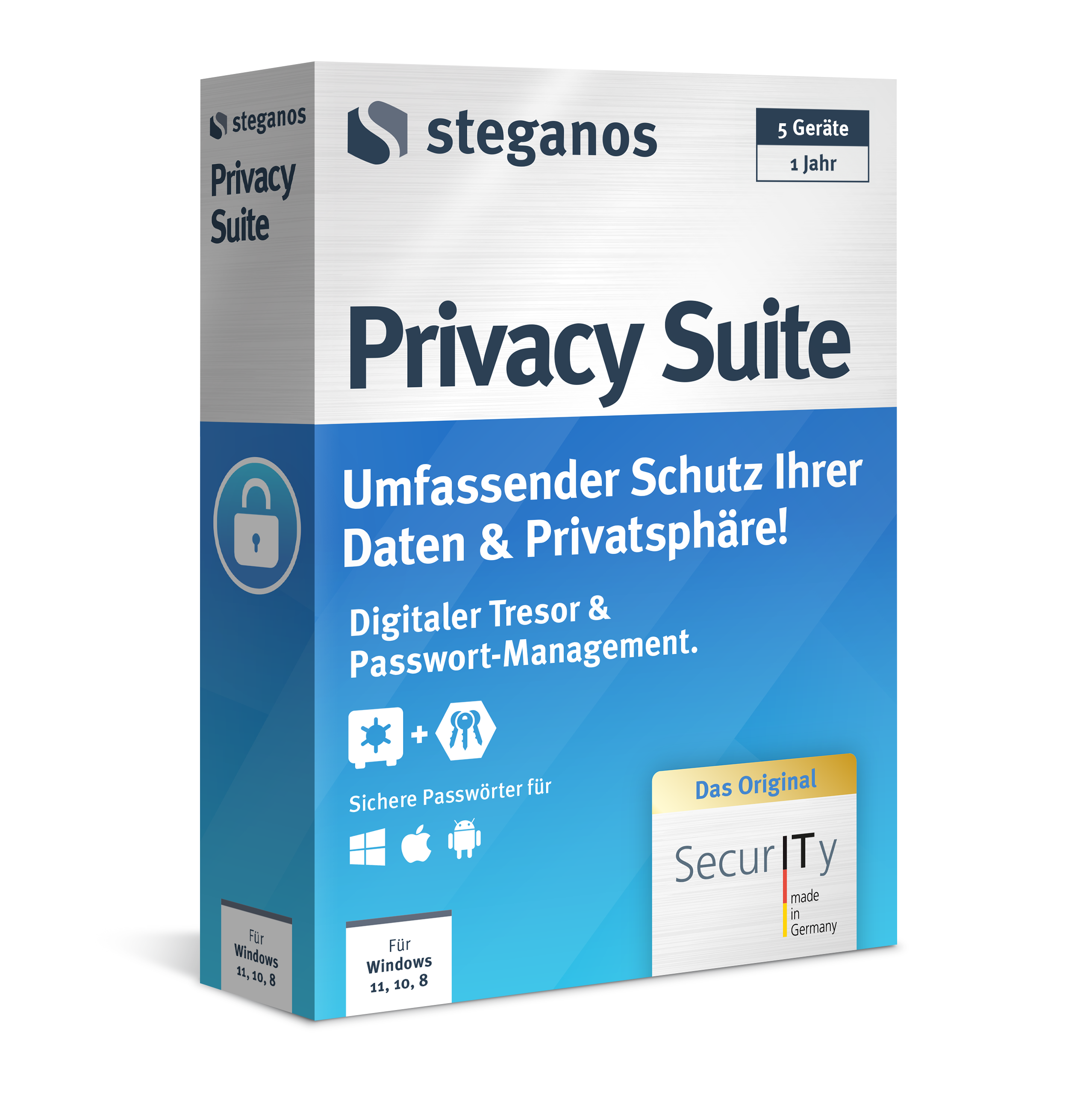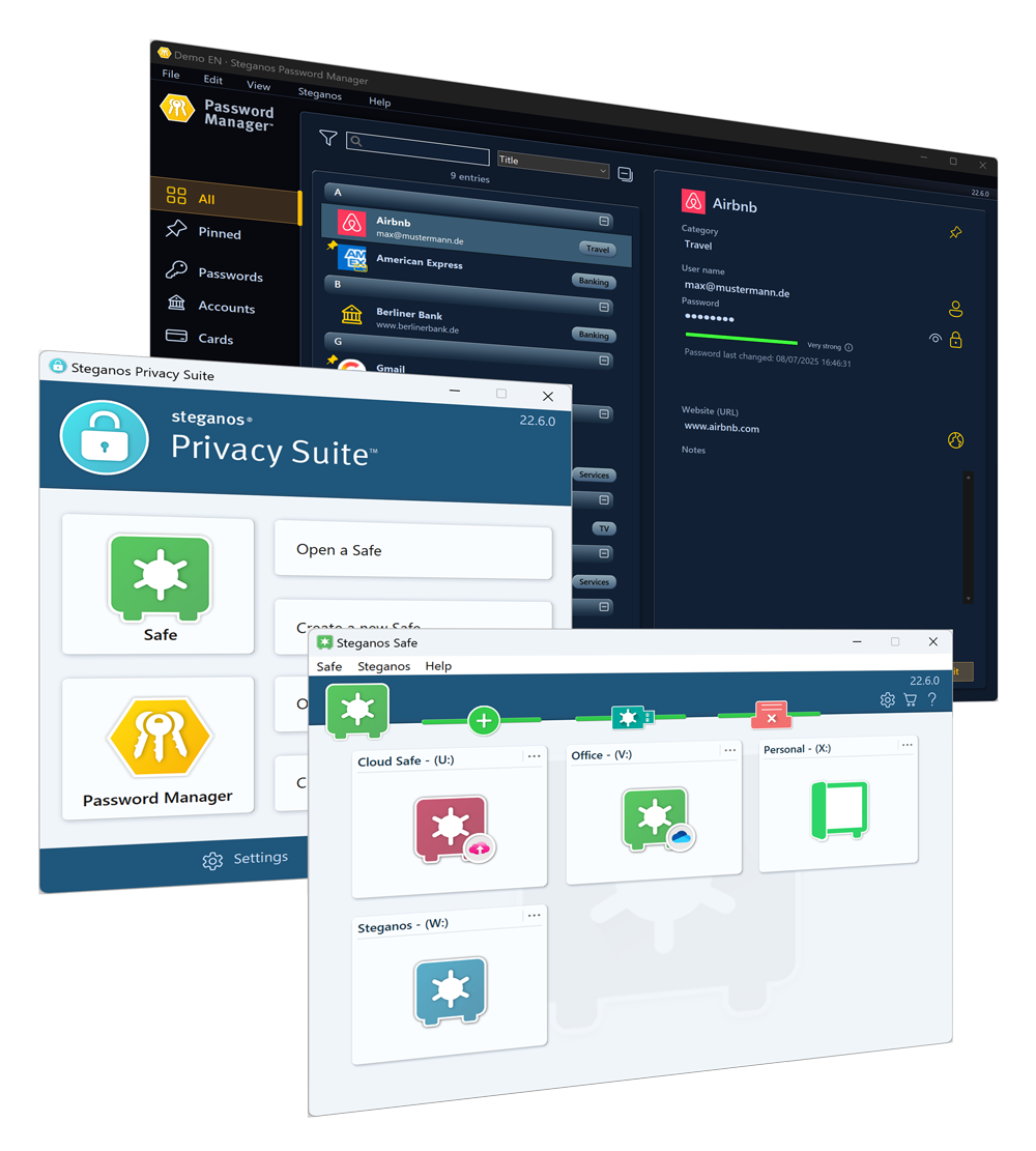 With Steganos Privacy Suite, users enjoy comprehensive protection of their digital privacy - without having to install multiple security programs. The Steganos Privacy Suite is the digital safe for all confidential data and offers sustainable, uncompromising protection against threats of all kinds. Backing up the user's data and blocking unauthorized access through secure encryption is one of the tasks of the security package. In addition, the integrated password manager provides users with a complete package for creating a digital keychain. An all-round solution for secure navigation through the digital world.